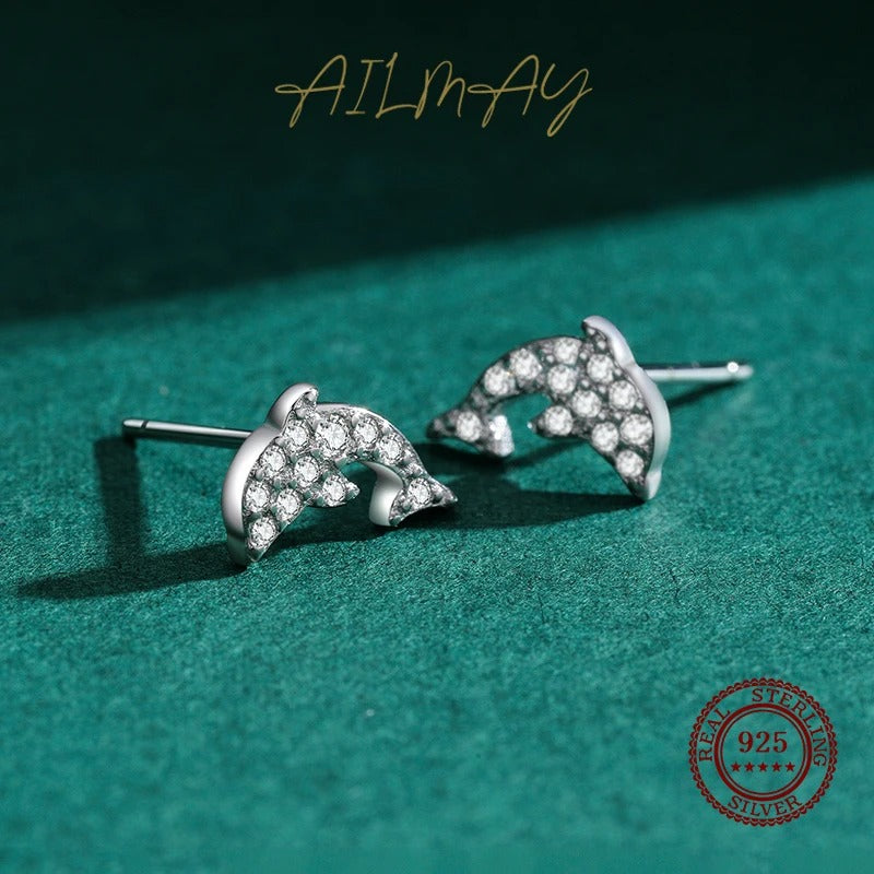 Add a touch of ocean-inspired charm to your look with the Ailmay Genuine 925 Sterling Silver Dolphin Stud Earrings. Featuring an adorable dolphin design with sparkling cubic zirconia (CZ) stones, these earrings are perfect for women and girls who love elegant yet playful jewelry.