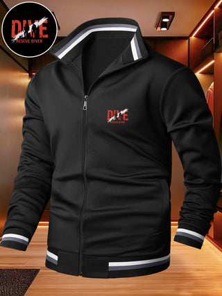 Stay sharp and comfortable with this Men’s Lightweight Stand Collar (High Neck) Jacket, featuring a bold diver print and modern zippered panel detailing. Designed for fall and winter wear, this regular-fit outerwear piece blends sporty aesthetics with everyday practicality.