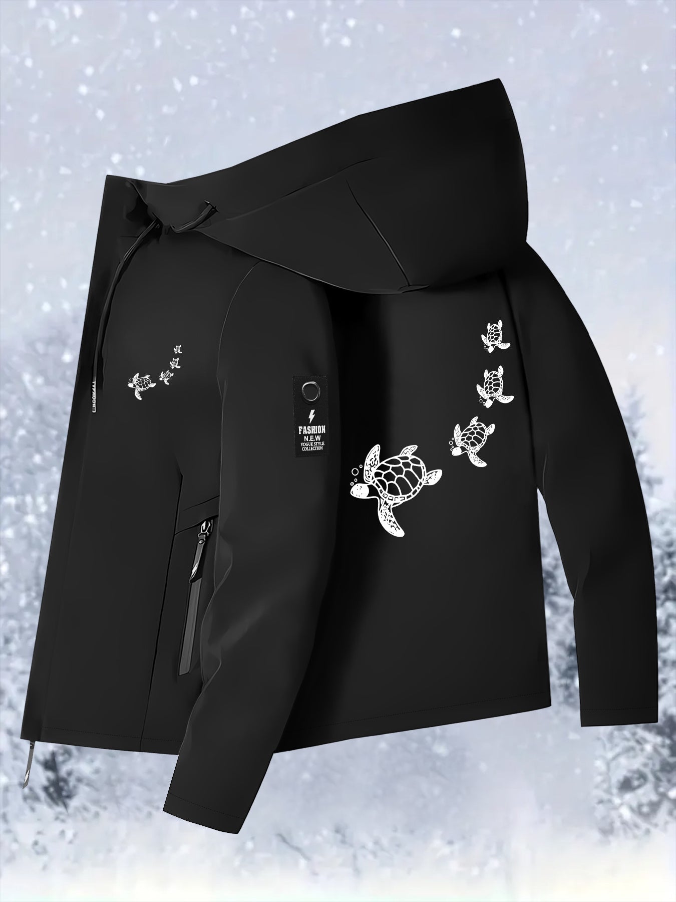 Stay stylish and ready for any adventure with this Men’s Lightweight Turtle Hooded Jacket, featuring an adjustable zippered drawstring hood and eye-catching turtle print. Designed for outdoor sports, casual wear, and everyday activities, this jacket combines practicality with modern style.