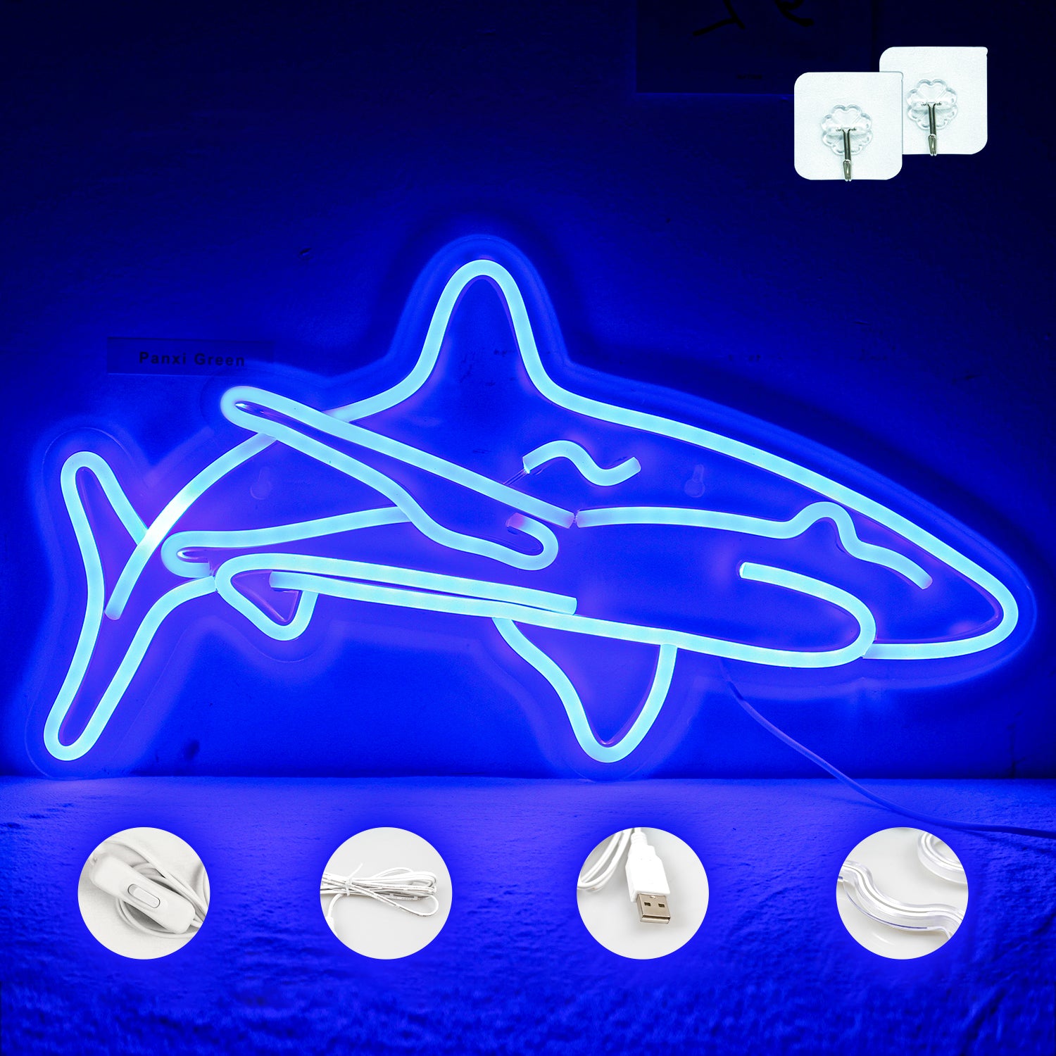 🦈 Unique Design: Eye-catching Blue Shark LED Neon Sign adds a fun, modern touch to any space.