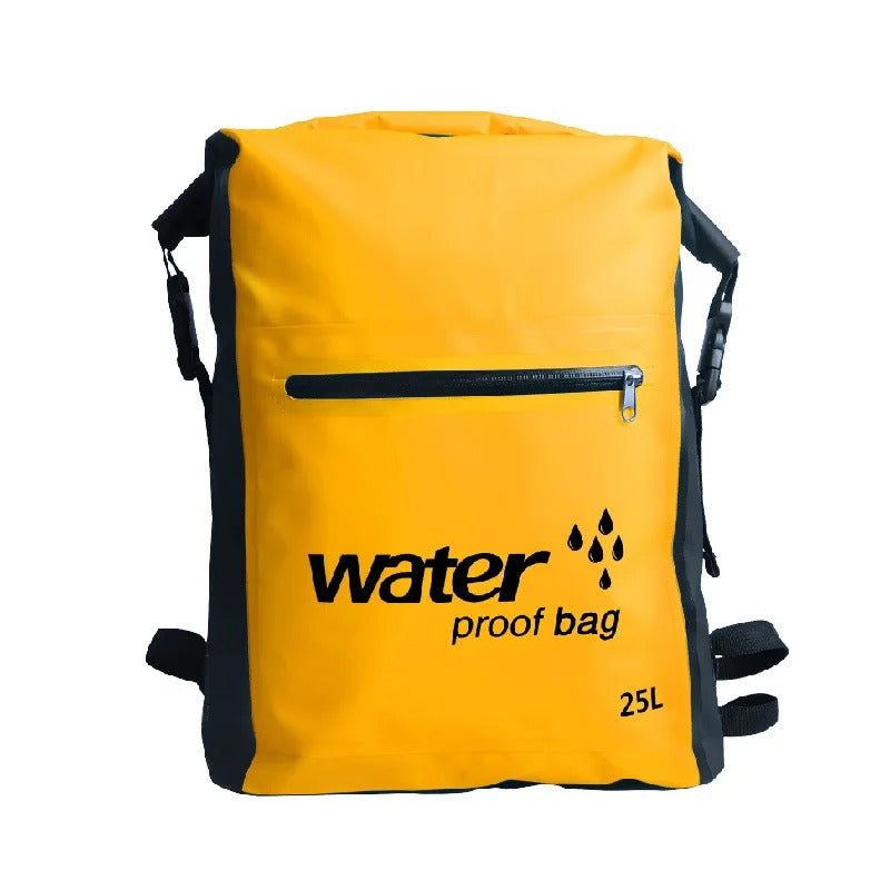 ¡Pongámonos activos afuera! No importa, si quieres caminar, escalar, andar en bicicleta o disfrutar de tu próximo viaje de buceo, esta bolsa estanca de 25 L en varios colores es perfecta para llevar todas tus cosas contigo. La mochila es 100% resistente al agua (incluso con fuertes lluvias) y, por lo tanto, perfecta para guardar la cartera, las llaves u otras cosas importantes de forma segura. Gracias al peso muy bajo y las correas de pecho y cintura ajustables, la mochila es muy cómoda.