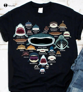 - 🦈 Funny Shark Design: Features love-themed great white and whale shark faces.