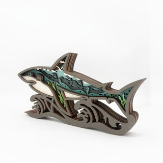 🦈 Artistic Design: Beautifully carved wooden shark with green and blue accents for a vibrant finish.