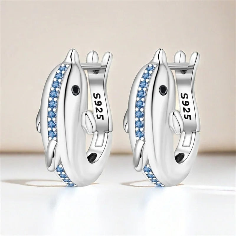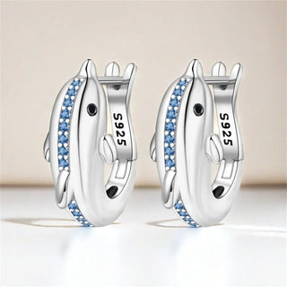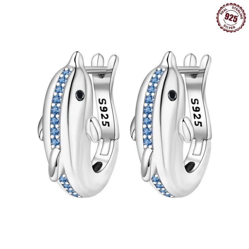 Elevate your style with these 925 Sterling Silver Blue Dolphin Double Hoop Earrings, designed to add elegance and sparkle to any outfit. Featuring a graceful dolphin design paired with a stylish double hoop structure, these earrings create a modern and eye-catching look.