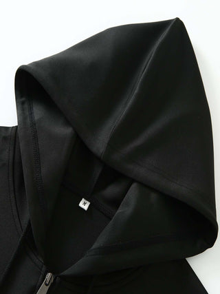 Crafted from a premium knit fabric blend of 95% polyester and 5% elastane, the jacket offers slight stretch for flexibility and comfort, while maintaining a sleek skinny fit that enhances your silhouette. The hooded design adds extra protection against wind and cooler temperatures, making it a practical choice for transitional weather.